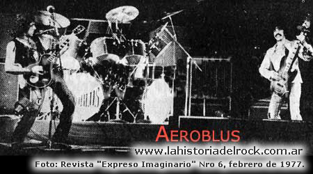 Debutan el día 6 de Enero de 1977 en el teatro "Premier" de Capital Federal, con una serie de recitales que fueron seriamente criticados por la prensa, ya que se hacia notoria la falta de ensayo del grupo. La banda, rápidamente superaría este mal comienzo y se consolidarían hasta editar su primer y único trabajo. Un factor externo al grupo marca el final de la banda, Junior Castello viaja a Brasil harto de la persecución policial "ya no me bancaba mas andar como en la clandestinidad, por lo del pelo y los hijos de puta de la policía siempre jodiendo" Cuando Pappo y Medina se dieron cuenta de que Junior ya no volvería, intentaron seguir con Gonzalo Farrugia en la batería, pero luego de un solo show, deciden finalmente desarmar la banda. El viernes 28 de mayo de 2010 se realiza en El teatro Flores, el "Tributo a Aeroblus" que contó con dos integrantes originales (Junior Castello y Alejandro Medina) y la participación de Chizzo en guitarra y voz. Con un lleno total de público, el show de mas de dos horas, estuvo plagado de momentos vibrantes y emotivos. Con Alejandro Medina como maestro de ceremonias durante la noche pasaron todos los temas del único disco de Aeroblus, a esta altura convertidos en clásicos: "Vamos a buscar la luz", "Solisimo", "Completamente nervioso", "La adivina", "Vine buscando el mar" y "Nada estoy sabiendo" entre otros. Una noche histórica para recordar a Aeroblus. En agosto de 2022 se edita: "Archivos Secretos, Capturados vivos en Buenos Aires - 1977", un álbum en vivo de la banda, originado a partir de una grabación original en cinta abierta de un ensayo con público, que Rolando Castello Junior, atesoró durante años. |