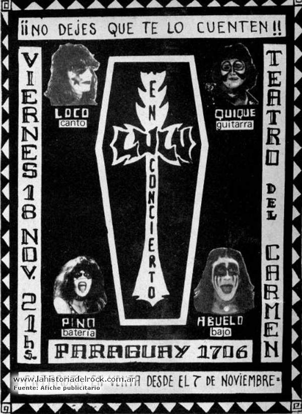 Banda oriunda de Buenos Aires que en sus recitales se presentaban pintados al estilo "KISS", practicaban algo definido por ellos como Rock-Teatro.