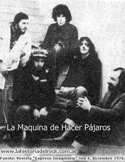 En un principio eran un cuarteto y conto con Ana Quatraro (ex Agosto) haciendo coros, con esta formación realizan una seguidilla de casi 40 shows en un pequeño café llamado "Bola Loca" de Capital Federal entre mayo y julio de 1976. Finalizada esta etapa, donde Charly busco poner a punto el sonido de la banda, García decide que no necesita coros y Ana abandona la formación. Con el tiempo Charly decide incorporar a Gustavo Bazterrica y tiempo después C. Cutaia quienes le dan a la formación, el sonido final. "La Maquina..." fue una de las bandas argentinas mas trabajadas en cuanto a su sonido, contó con el genio (intacto) de Charly y sus ganas de experimentar, el grupo no fue bien recibido por la crítica y el público, pero su sonido se adelantó varios años en el tiempo, en su momento tenían un extraño record, su primer disco fue el más caro de la historia en Argentina, salía más del doble que un disco común. Sus dos únicos trabajos editados, son de excelente calidad y de audición imprescindible, la calidad del sonido en ambos trabajos es sobresaliente y se diferenciaba notablemente de cualquier otro disco grabado hasta ese momento. El primer disco contiene joyas como "Bubulina" y "Ah, te vi entre las luces". El segundo trabajo de la banda muestra una mayor influencia de Cutaia en los teclados y dejo temas inolvidables como "Obertura 777" e "Hipercandombe". Hacia fines de 1977 Bazterrica abandona la banda, días después Charly anuncia su intención de viajar a Brasil, la banda intenta continuar pero finalmente se disuelve a fines del año 1977. El 7 de agosto de 2006, el baterista Oscar Moro fallece en la ciudad de Buenos Aires. |