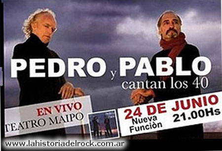 Miguel Cantilo y Jorge Durietz son amigos desde la juventud, en un comienzo probaron varias formaciones hasta que se dieron cuenta que funcionaban mejor como dúo. Grabaron algunos de los temas más recordados por la gente, como "Catalina Bahía" (canción que fuera censurada por ser considerada "pornográfica") "Apremios Ilegales" (un claro mensaje sobre lo que se vivía en el país), "Marcha de la Bronca" y otros. En 1972 tras su segundo disco el dúo se separa, presionados por la censura imperante que no les permitía actuar ni tocar en televisión. Sus integrantes emigran, Cantilo viaja al sur Argentino, donde graba con el "Grupo Sur" y luego a España donde forma "Punch", por su parte Durietz forma "Melimelum". El dúo se integra nuevamente en 1980 y los discos siguientes se graban, bajo el nombre de Cantilo-Durietz al estar censurados como Pedro y Pablo. Se separan en 1985, para sendos intentos solistas. El dúo regresa esporádicamente a partir de 1995. El 17 y 24 de junio de 2009 el dúo se presenta en el Teatro Maipo, dos shows con los cuales Miguel Cantilo y Jorge Durietz, festejan la reedición de su primer disco: "Yo vivo en esta ciudad (1970)". El trabajo que fue remasterizado trae las 12 canciones originales del disco más 9 bonus tracks de temas que originalmente quedaron inconclusos, o directamente fuera del disco. Con la experiencia de 40 años a cuestas el dúo lucio firme sobre el escenario y con las temáticas de sus temas, absolutamente vigentes pese al tiempo transcurrido. En el año 2013, el dúo realiza un tour por Israel. El 9 de junio de 2016 durante una presentación de Miguel Cantilo en el Centro Cultural Konex, el dúo vuelve a reunirse sobre un escenario. Hacia 2017 editan un nuevo trabajo de estudio llamado: "Unidos por el cantar". La música de Pedro y Pablo es emblemática del rock argentino y su poesía simple y directa fue descripta por Miguel Cantilo, como "Creo que hay que hacer poesía en el idioma de la gente, no el idioma de los intelectuales de anteojos". |